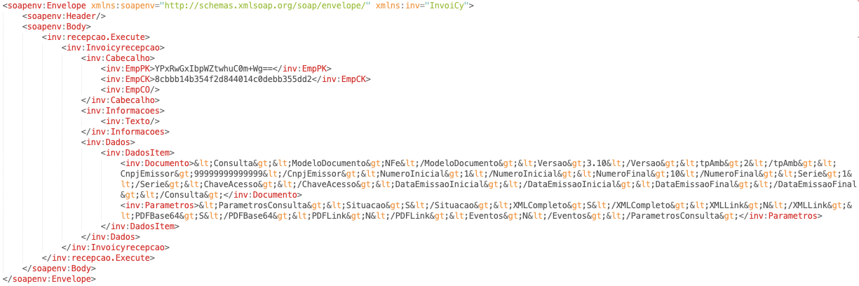 Após a geração do XML dos parâmetros de consulta e do XML dos parâmetros de retorno, o próximo passo é realizar o consumo do Web Service de recepção do InvoiCy.