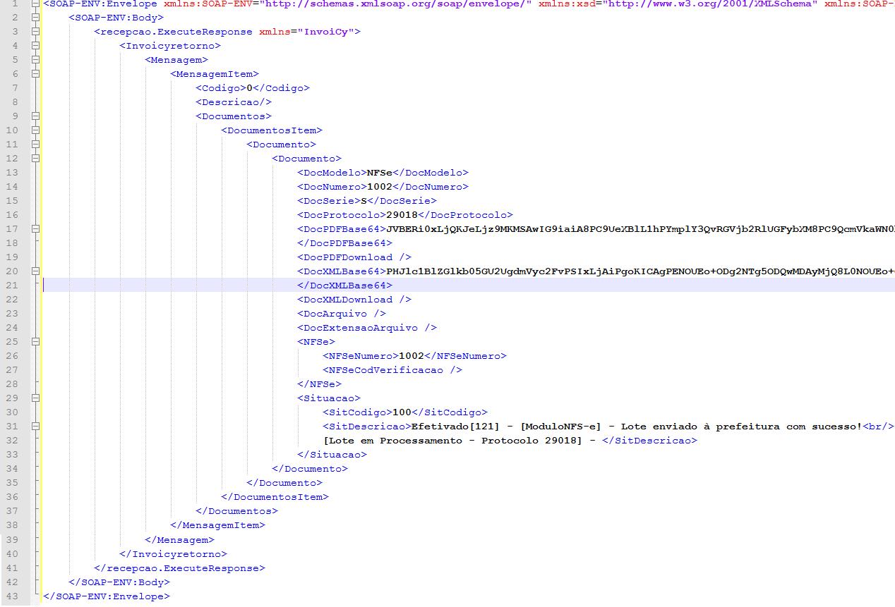 Após o envio do XML, precisamos realizar a leitura do retorno da Recepção de RPS. O retorno recebido segue a seguinte estrutura SOAP: