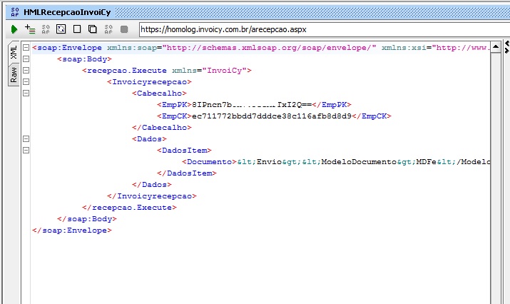 Obs: As tags “EmpCo”, “Texto” e “Parametros” também podem ser removidas da estrutura Soap, pois não é necessário o envio de nenhuma informação, conforme imagem acima.