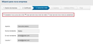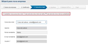 Nessa etapa é possível configurar um Remetente padrão para receber os e-mails referentes a sua empresa.