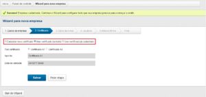 Esta e todas as demais etapas do Wizard são possíveis de serem puladas, mas isto não elimina o cadastro da empresa, somente o deixará incompleto.