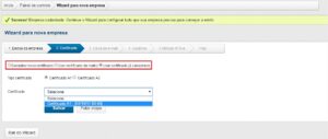 Ao cadastrar o certificado existem 3 opções:
