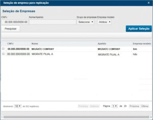 Porém, poderá ser selecionada apenas uma empresa para que seja utilizada como replicação dos dados, se mais empresas foram selecionadas, será utilizada a primeira empresa da etapa “Seleção de empresa para a replicação”.