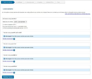 Após preencher as informações na primeira etapa de dados da empresa será apresentada a etapa de licenciamento, com os módulos disponíveis para solicitação de licença.