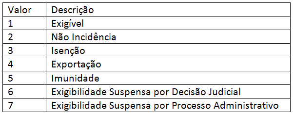 Utilizar os seguintes valores para Natureza da Operação: