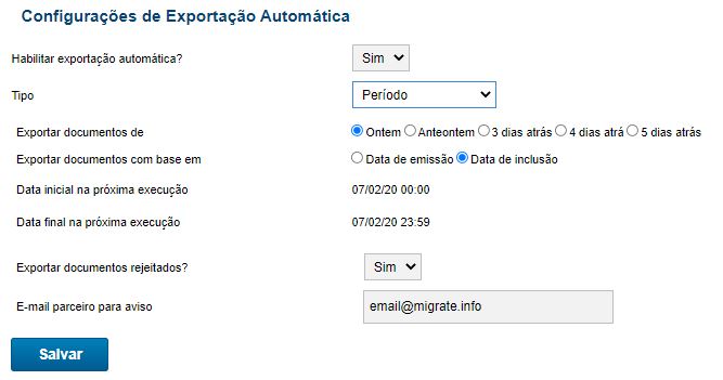 No processo de exportação manual, os documentos serão exportados de acordo com a data configurada, mesmo que em paralelo exista um agendamento para a exportação automática, que deverá rodar normalmente.