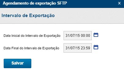 Se a exportação for por período, todos os arquivos serão compactados em uma pasta .zip e armazenados no endereço do diretório SFTP configurado. A nomenclatura padrão do arquivo .zip gerado será: CNPJ_DATAHORAEXPORTADA.zip, exemplo, 99999999000191_20102014100442.zip.