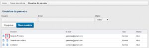 Na tela de Usuários do Parceiro, buscar através dos filtros o usuário já cadastrado que deseja-se vincular a nova empresa e clicar na opção de editar o usuário, como demonstra a imagem a seguir.
