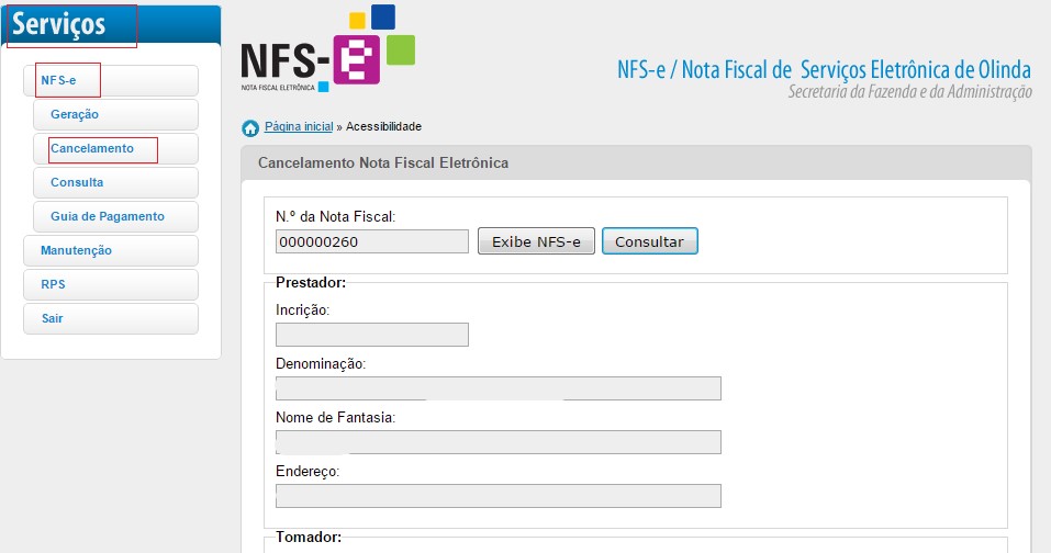 Só é possível realizar o cancelamento de NFS-e através do sistema da prefeitura, para isso o contribuinte deverá acessar o mesmo com as credenciais que lhe foram fornecidas pela própria prefeitura e seguir o seguinte caminho “Serviços -> NFS-e -> Cancelamento”.