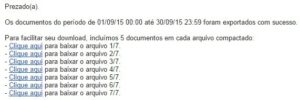 Ao exportar uma quantidade maior do que o limite configurado, os arquivos serão divididos em vários arquivos .zip, e no e-mail será enviado os links para baixar os arquivos exportados. A imagem abaixo representa a estrutura do e-mail enviado.
