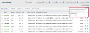 6 de novembro de 2015Buscando facilitar a usabilidade dos usuários do InvoiCy, disponibilizamos uma opção para exportar os documentos para uma lista no Excel, e ainda a possibilidade de efetuar o download de arquivos XML e PDF através da tela inicial da aplicação. Para isso, acesse o ícone posicionado na parte superior direita da grid na tela inicial da aplicação, como demonstra a imagem a seguir.