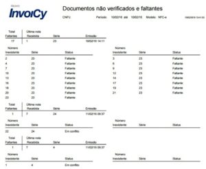 16 de fevereiro de 2016Buscando facilitar para os usuários efetuarem o controle dos documentos emitidos por suas empresas, disponibilizou-se no InvoiCy um relatório de documentos não verificados e faltantes, onde será possível identificar falhas no sequencial da numeração de documentos emitidos para todos os modelos.