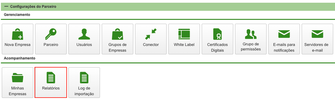 Para acessar a tela de geração de relatórios basta ir até o “Painel de Controle”, e no grupo “Sistema” clicar sobre o ícone “Relatórios”, como demonstrado na imagem a seguir.