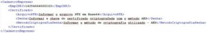 Ao efetuar a atualização do cadastro da empresa, não é necessário informar todos os dados novamente, basta enviar o CNPJ da empresa juntamente com os dados do certificado, e a nova tag <MetodoCriptografiaSenha>, que deverá ser preenchida com o método utilizado para criptografia da senha, neste caso o método AES. A imagem abaixo demonstra a estrutura que deverá ser enviada para cadastrar o certificado com a senha criptografada.