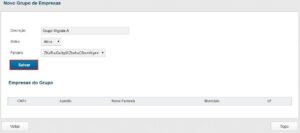 Ao salvar as informações do grupo, será habilitada a opção para “Selecionar” empresas para este grupo.