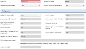 Ou seja, sempre que o parâmetro ‘Habilitar DANFE simplificado’ estiver como ‘Sim’, vai imprimir o DANFE de acordo com as informações enviadas no parâmetro de envio da NF-e. Caso os parâmetros não forem enviados então irá considerar a configuração do campo ‘Orientação’ da tela.