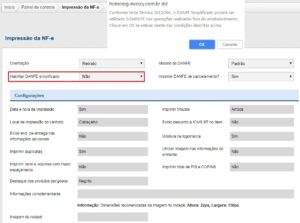 – Já se o parâmetro ‘Habilitar DANFE simplificado’ da tela de Impressão estiver como ‘Não’, e no momento de envio da NF-e for informado o parâmetro de impressão com a opção ‘Simplificado’, será impresso o DANFE de acordo com o que está configurado na opção ‘Orientação’ da tela de Impressão.