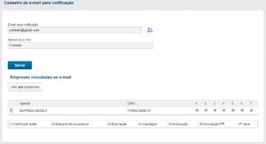 A partir de agora, as notificações serão enviadas tanto para o endereço cadastrado nos dados da empresa, como para o endereço cadastrado na nova tela de e-mails para notificações.