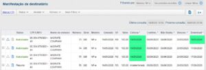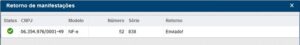 Após será aberta uma nova tela com o retorno das manifestações, indicando se a mesma foi concluída com sucesso, ou se houve alguma falha, especificando na coluna ‘Retorno’ o que aconteceu. Veja na imagem abaixo a representação dessa tela de retornos.