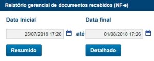 O relatório resumido trará os CNPJs, a razão social e a quantidade de documentos que foram recebidos, baixados ou importados. Já no relatório detalhado, mais informações serão exibidas, como a chave de acesso dos documentos, o valor, número e série, e o status da manifestação desses documentos. Logo após selecionar o tipo do relatório, o download do PDF será iniciado.