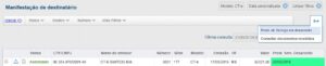 Para documentos do tipo CT-e, nesse grupo de ações aparecerá apenas a opção ‘Prest. de Serviço em desacordo’, como pode ser observado na imagem a seguir.