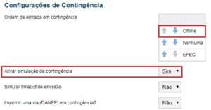 2º – Na tela de configurações, selecionar a primeira opção de contingência como “offline”, e marcar o campo Ativar simulação de contingência como “SIM”. Salve ao final da página.