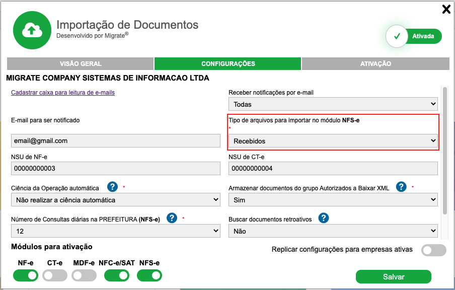 Para utilizar a NFS-e de entrada no InvoiCy é necessário contratar a extensão “Importação de Documentos”, e configurar uma caixa de leitura de e-mail onde são recebidas as notas fiscais.