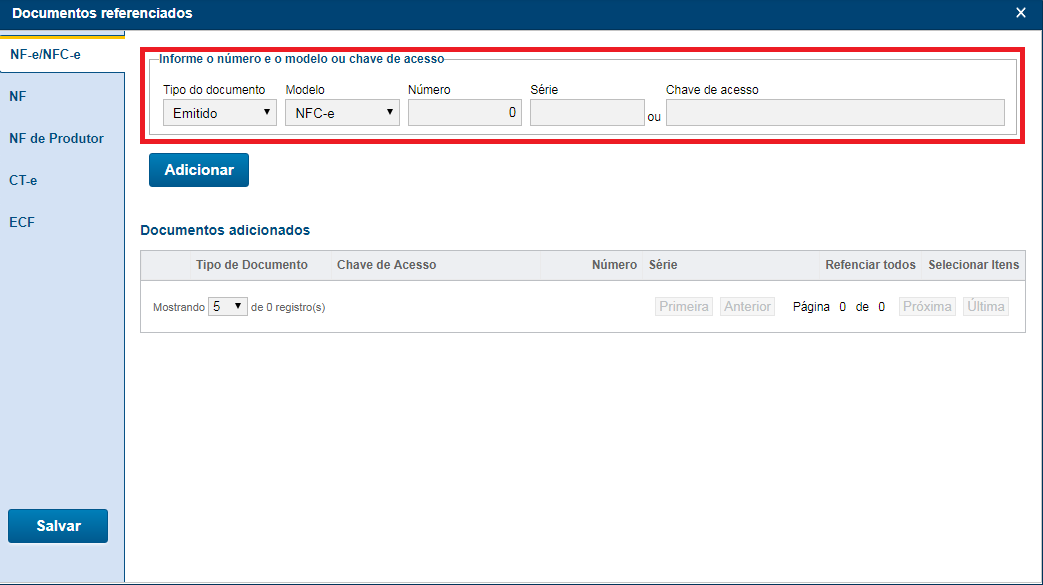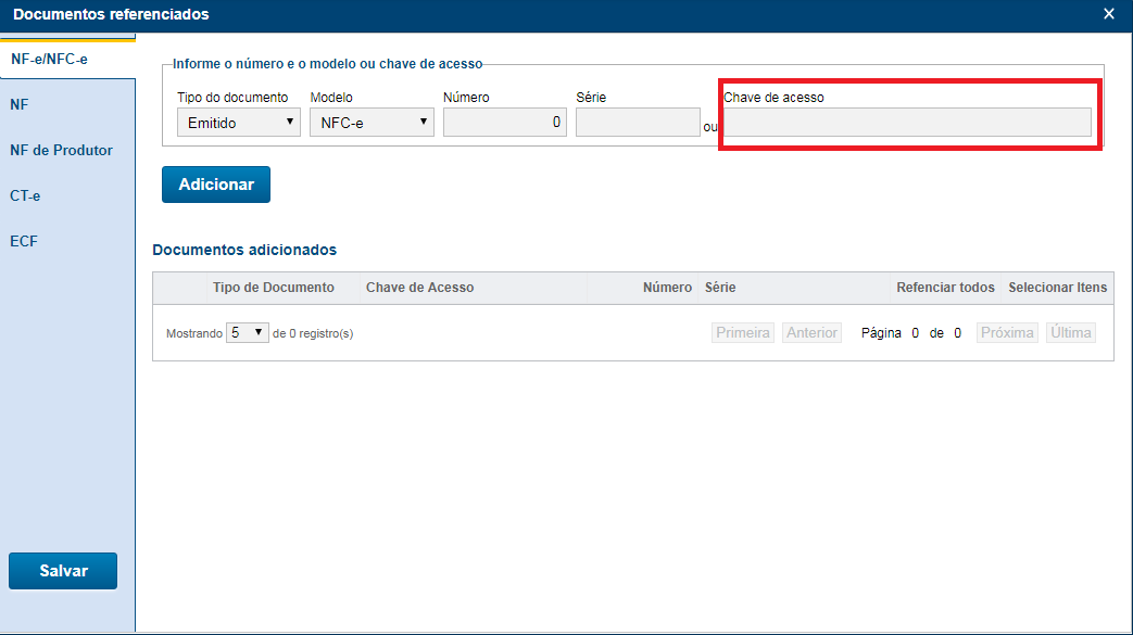 No referenciamento, o usuário poderá referenciar todos ou alguns itens da nota, sendo permitido 120 itens referenciados por cada nota emitida.