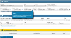 Pode-se visualizar na imagem abaixo o preenchimento desses campos, e também a mensagem de aviso alertando sobre a necessidade de adicionar um documento referenciado.