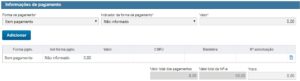 No grupo ‘Informações de pagamento’ já será adicionada automaticamente a forma de pagamento ‘Sem pagamento’, por se tratar de uma nota de devolução.