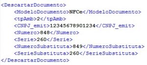 Agora, ao enviar o descarte deve-se informar no campo nNFSubstituta e serieSubstituta, o número e série do documento que irá substituir o documento descartado. Veja na imagem abaixo o novo layout de integração.