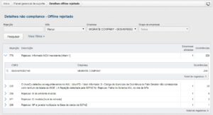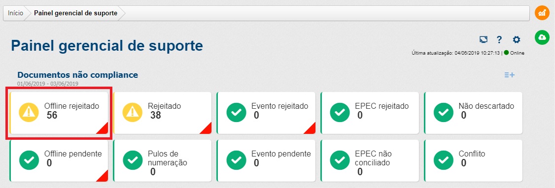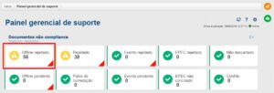 Através do Painel gerencial de suporte o processo de correção estará disponível por meio da opção ‘Offlline Rejeitado’ do gráfico de Documentos não compliance.
