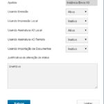 Na tela de edição da instância, pode-se configurar as opções conforme o desejado, ativando, desativando ou bloqueando cada um dos serviços.