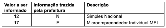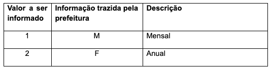 • Informar o tipo de retenção do ISS (verificar tabela abaixo).