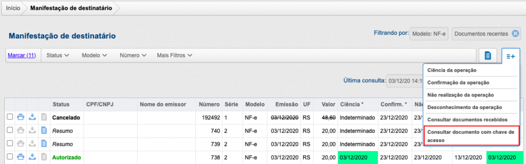 – Nova opção de consulta de NF-e por chave de acesso nas telas de manifestação de destinatário e importação de documentos;