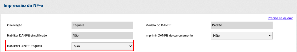 Para habilitar esse novo modelo de DANFE no InvoiCy, basta acessar a tela de configurações de impressão da NF-e, e configurar o parâmetro ‘Habilitar DANFE Etiqueta’ com a opção ‘Sim’.
