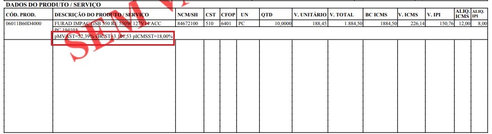 Ao habilitar esse novo parâmetro, será gerado um DANFE de entrada mostrando na descrição do item os dados das tag: pMVAST pRedBCST vBCST pICMSST. Abaixo, uma imagem ilustrativa de como ficará a impressão do DANFE quando o parâmetro estiver marcado com a opção SIM: