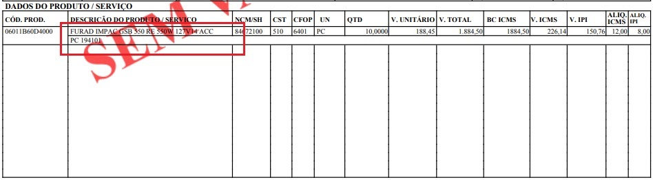 - Valor total da Nota Fiscal;