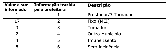 - O código do município deve ser informado vazio para o grupo do tomador bem como para o serviço.