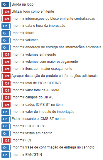 As demais configurações são opções que também estão disponíveis no modo personalizado normal de configurações do DANFE, com exceção de algumas opções que serão liberadas apenas para esse componente.