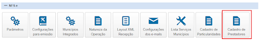 O cadastro de prestadores de serviço pode ser realizado por meio do Painel de Controle do InvoiCy, no grupo de informações da NFS-e, onde foi adicionado um novo ícone chamado ‘Cadastro de Prestadores’.