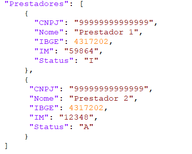 O cadastro dos prestadores também pode ser realizado por meio de integração via SOAP ou REST, no momento do cadastro da empresa ou via atualização do cadastro.