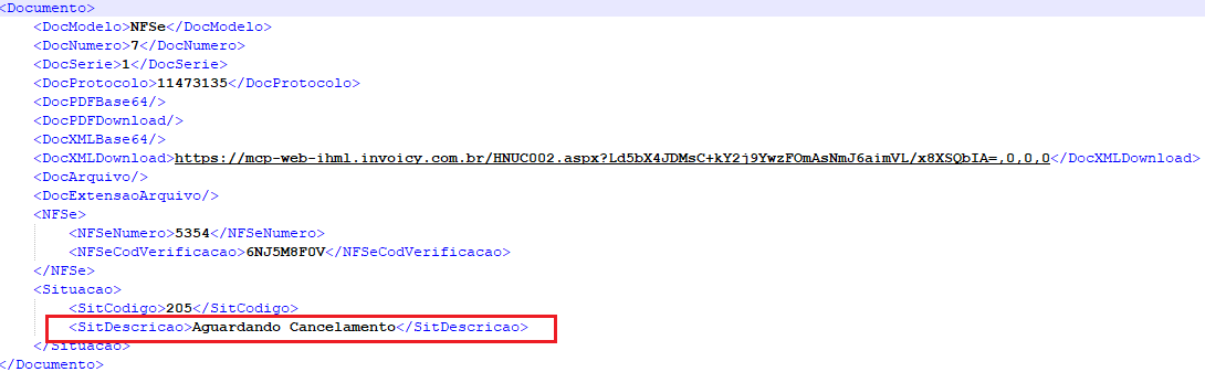 Os documentos com status “Aguardando Cancelamento” não serão reprocessados de forma automática pelo InvoiCy, permanecendo assim até que o Prestador envie uma Consulta desse documento para então realizar a busca no sistema da prefeitura.