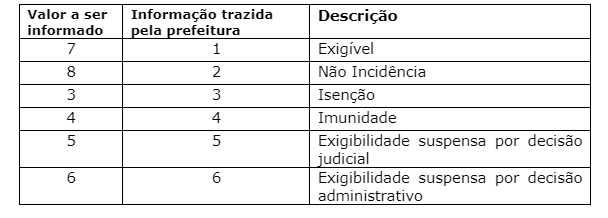 O campo de natureza da operação deverá seguir o padrão ABRASF: