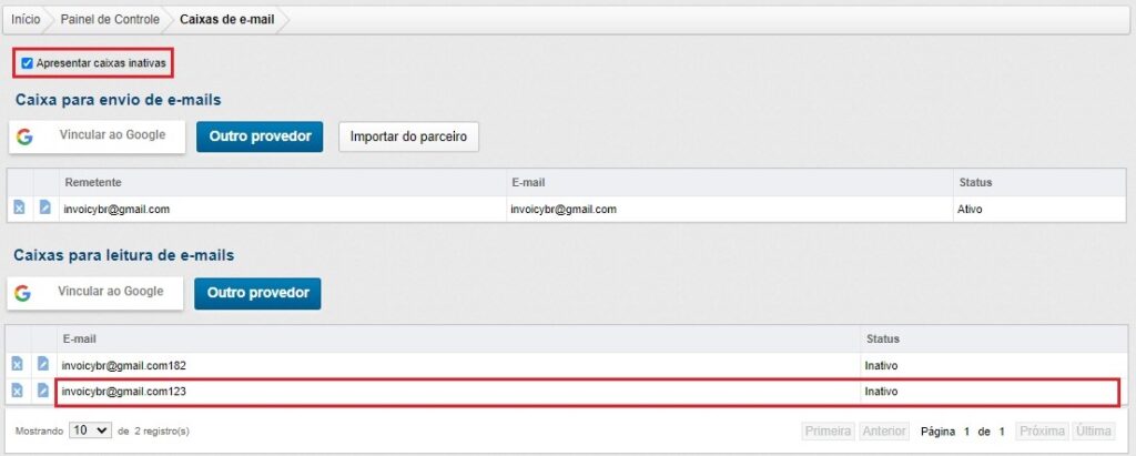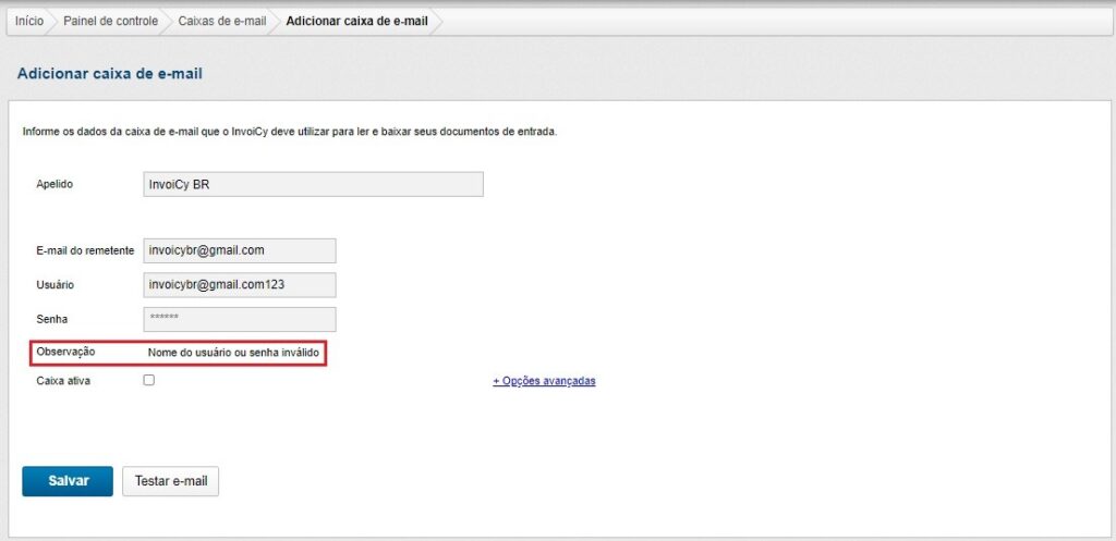 Com a nova versão do InvoiCy foi implementado um controle da quantidade de erros permitidos, que são ocasionados pelas caixas de e-mail.