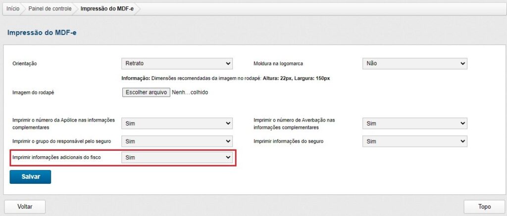 – Impressão das Informações Adicionais do Fisco no DAMDFE: