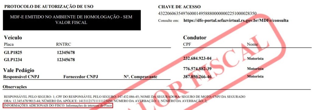 Com o novo parâmetro configurado como “Sim”, as informações serão impressas no MDF-e conforme a imagem abaixo.