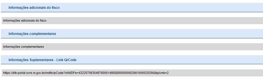 Além disso, agora será exibido o campo Informações Suplementares – Link QrCode, com a URL da “Consulta do MDF-e via QR-Code” no site da SEFAZ.