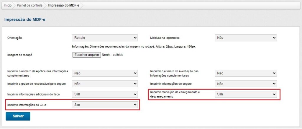 Lembrando que o campo Informações complementares, também pode receber as informações do número da Apólice, número da Averbação, Responsável pelo seguro e as Informações do Seguro, caso os seus respectivos parâmetros estejam ativados na tela de Impressão do MDF-e.