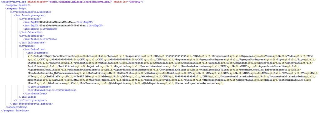 24 de outubro de 2022Olá! Neste artigo vamos explicar como configurar uma nova exportação recorrente no InvoiCy, através da comunicação com o Web Service arecepcao.aspx disponibilizado pelo InvoiCy.